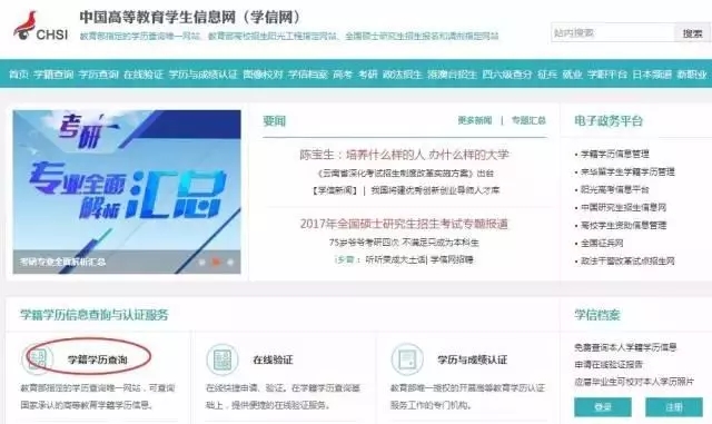 学信网(http://www.chsi.com.cn/)是教育部指定的学历查询唯一网站、教育部高校招生阳光工程指定网站、全国硕士研究生招生报名和调剂指定网站。